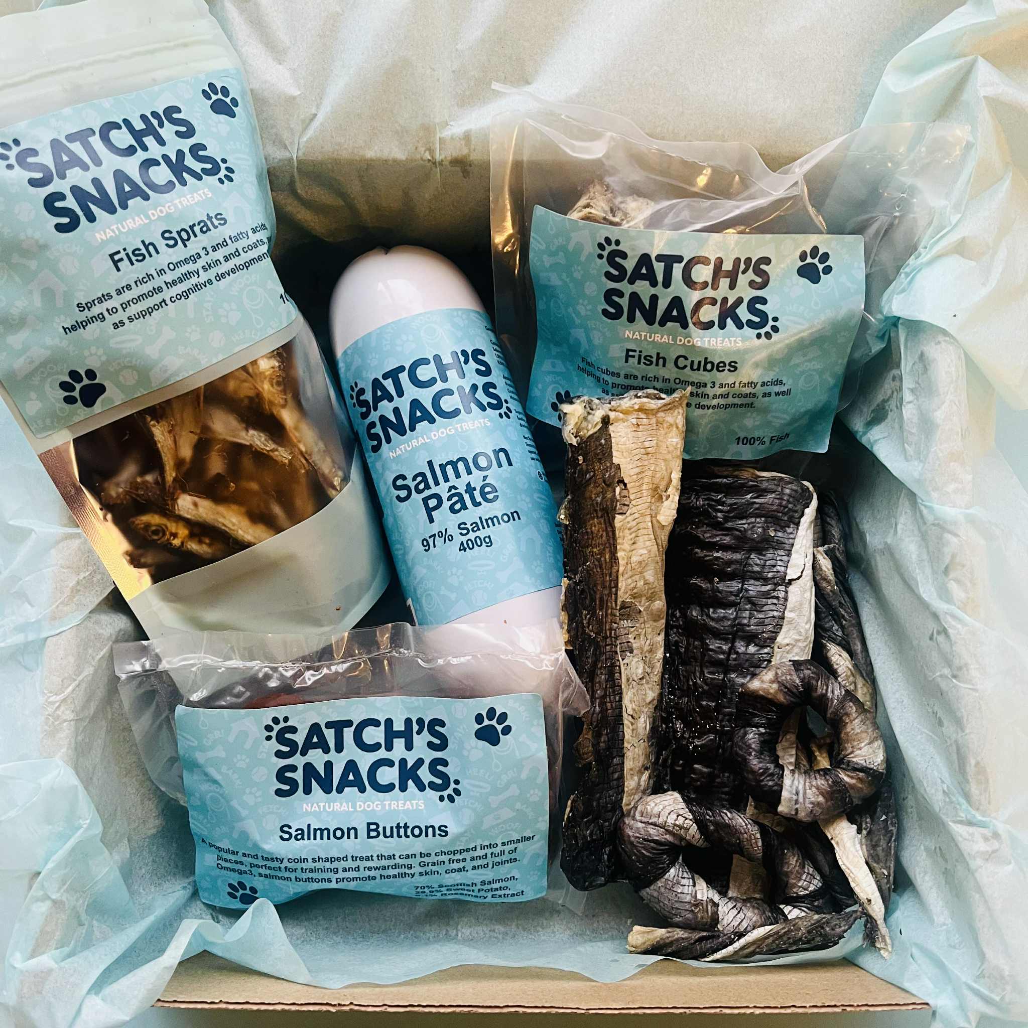 Boxes tailored to suit your pooch, stuffed with a variety of natural dog treats. No additives or bad stuff.